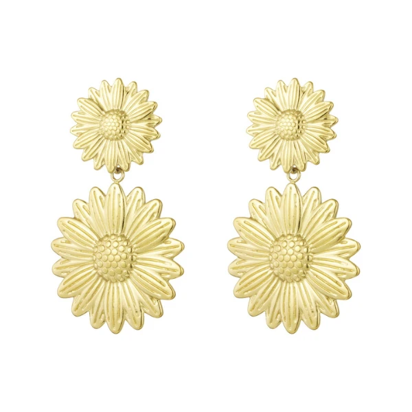 Maak kennis met de elegante zonnebloem oorbellen, gemaakt van goud stainless steel. Deze oorbellen zijn niet alleen prachtig om te zien, maar ook ontworpen met duurzaamheid en comfort in gedachten. Stainless steel is hoogwaardig materiaal dat bestand is tegen verkleuring en water, waardoor je je oorbellen probleemloos elke dag kunt dragen, ongeacht de weersomstandigheden, activiteiten, water en parfum.